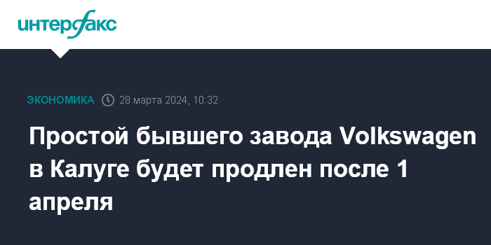 Простой бывшего завода Volkswagen в Калуге будет продлен после 1 апреля