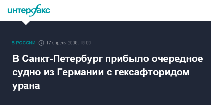 В Санкт-Петербург прибыло очередное судно из Германии с гексафторидом урана