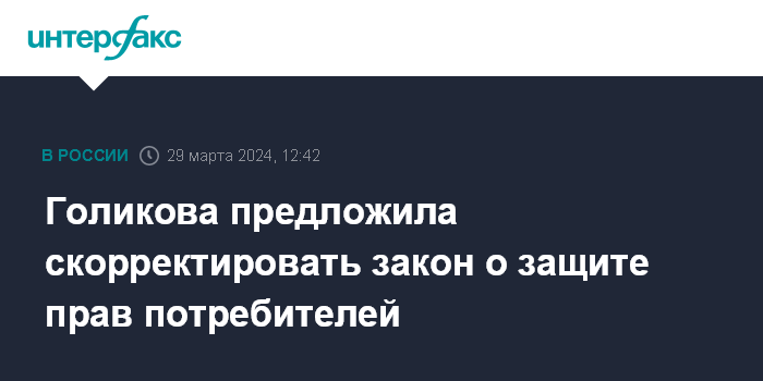 Москва. 29 марта. INTERFAX.RU - Вице-премьер Татьяна Голикова заявила о необходимости актуализировать закон о защите прав потребителей с учетом новых вызовов.