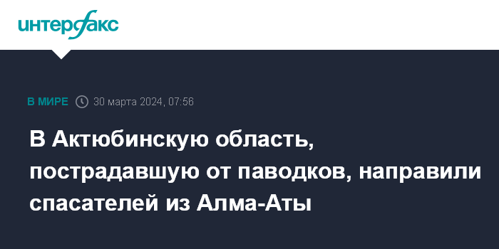 Москва. 30 марта. INTERFAX.RU - В Актюбинскую область (запад Казахстана) для ликвидации последствий паводков в ночь на субботу вылетела дополнительная группировка спасателей республиканского оперативно-спасательного отряда (РОСО) Алма-Аты, сообщила пресс-служба МЧС республики.