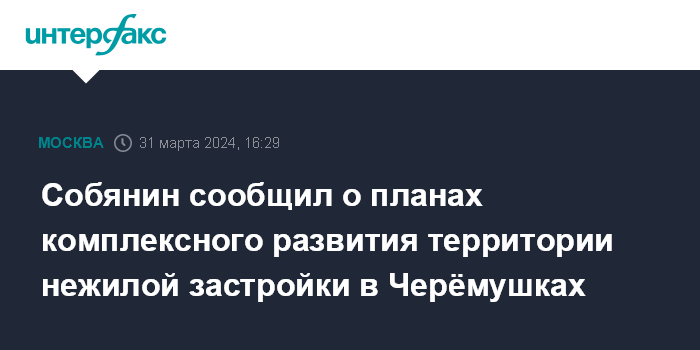 Собянин сообщил о планах комплексного развития территории нежилой застройки в Черёмушках