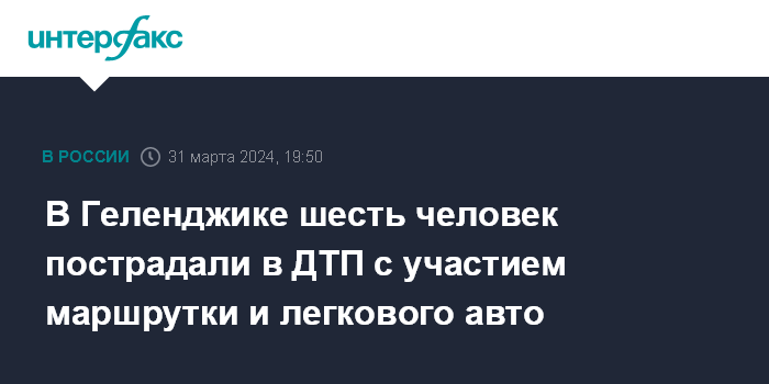 Москва. 31 марта. INTERFAX.RU - Полиция проводит проверку по факту ДТП с участием маршрутного такси и легкового автомобиля в Геленджике, пострадали пассажиры, сообщает в воскресенье пресс-служба ГУ МВД России по Краснодарскому краю.