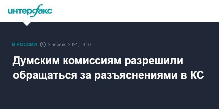 Москва. 2 апреля. INTERFAX.RU - Госдума изменила собственный регламент, который теперь предусматривает право палаты обращаться с ходатайствами о разъяснении постановлений и заключений Конституционного суда России по предложению комиссий Госдумы, а не только фракций и комитетов, как сейчас.