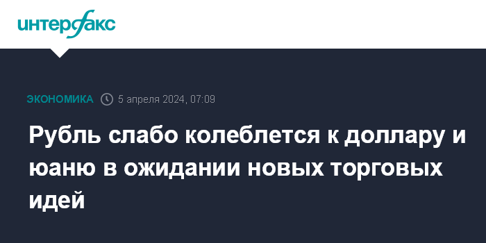 Москва. 5 апреля. INTERFAX.RU - Доллар США и юань торгуются без ощутимой динамики на Московской бирже утром в пятницу, рубль пассивен на старте торгов в ожидании новых стимулов к движению.