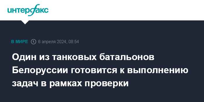Москва. 6 апреля. INTERFAX.RU - К выполнению задач по предназначению в ходе проверки боевой готовности готовится приступить один из танковых батальонов вооруженных сил Белоруссии, сообщили в Минобороны страны в субботу утром.