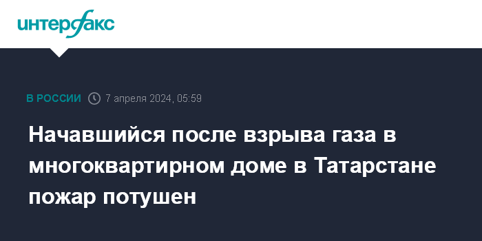 Начавшийся после взрыва газа в многоквартирном доме в Татарстане пожар потушен
