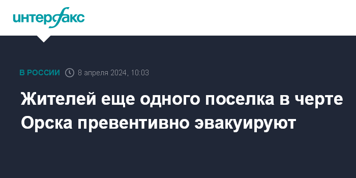 Москва. 8 апреля. INTERFAX.RU - Власти Орска (Оренбургская область) объявили об эвакуации жителей еще одного поселка в черте города.