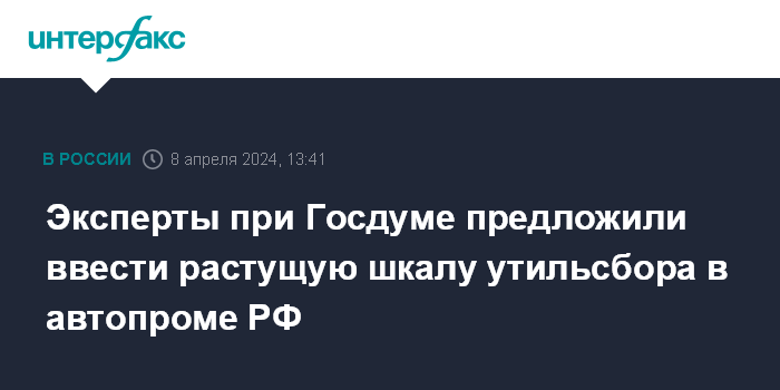 Москва. 8 апреля. INTERFAX.RU - Экспертный совет при комитете по промышленности и торговле Госдумы выдвинул предложение о вводе поэтапно растущей шкалы утилизационного сбора в автопроме для защиты российского рынка от экспансии китайских брендов, говорится в сообщении "АвтоВАЗа".