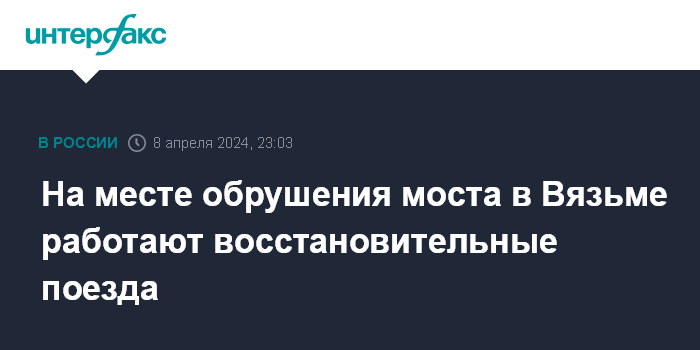 На месте обрушения моста в Вязьме работают восстановительные поезда