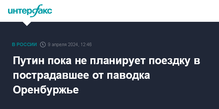 Путин пока не планирует поездку в пострадавшее от паводка Оренбуржье