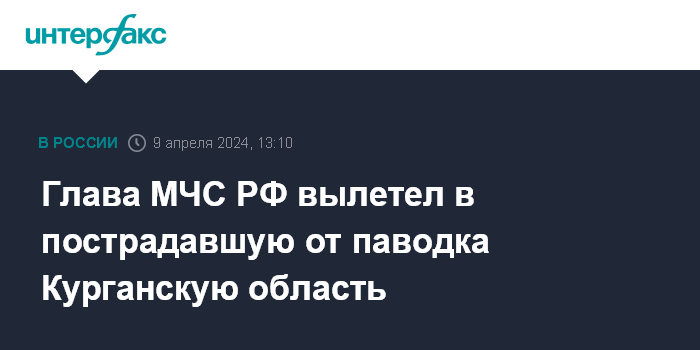 Глава МЧС РФ вылетел в пострадавшую от паводка Курганскую область