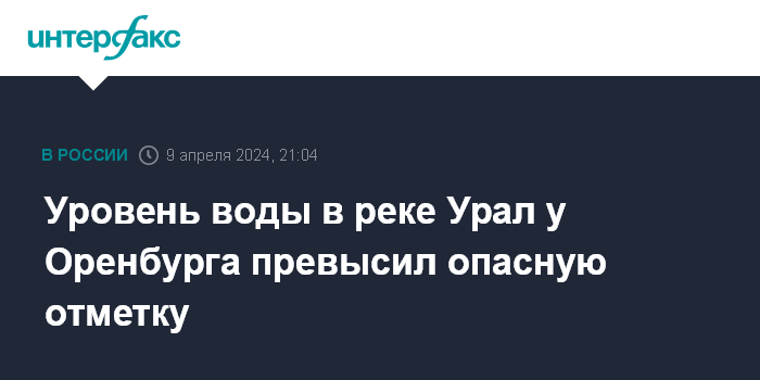 Москва. 9 апреля. INTERFAX.RU - Уровень воды на реке Урал у Оренбурга в 22:00 повысился до отметки 931 см, что выше опасной на один сантиметр, сообщает пресс-служба администрации Оренбурга.