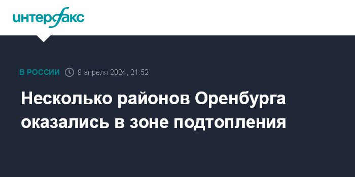 Москва. 9 апреля. INTERFAX.RU - Подтоплены несколько районов и поселков Оренбурга, сообщает телеграм-канал городской администрации.