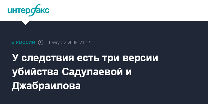 Грозный. 14 августа. INTERFAX.RU - Следствие отрабатывает три версии убийства сотрудников неправительственной организации "Спасем поколение" Заремы Садулаевой и ее супруга Алика Джабраилова, заявил министр внутренних дел Чечни Руслан Алханов.