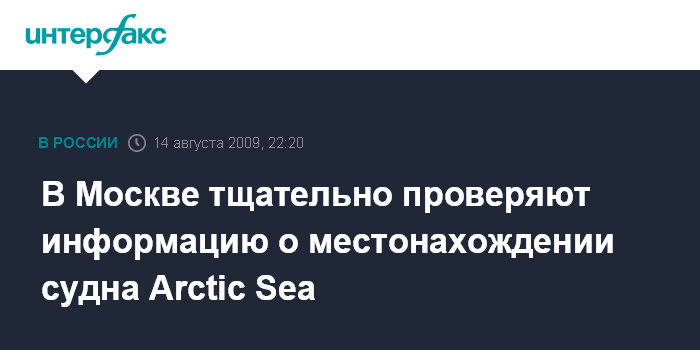 В Москве тщательно проверяют информацию о местонахождении судна Arctic Sea