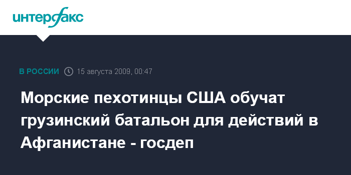 "Морские пехотинцы США прибудут в Грузию 15 августа для проведения программы обучения грузинского батальона для действий в Афганистане", - сообщил представитель госдепартамента.