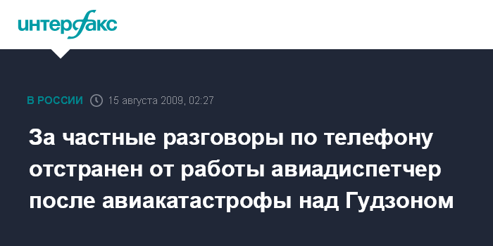 За частные разговоры по телефону отстранен от работы авиадиспетчер после авиакатастрофы над Гудзоном