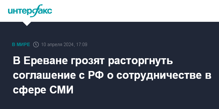 В Ереване грозят расторгнуть соглашение с РФ о сотрудничестве в сфере СМИ