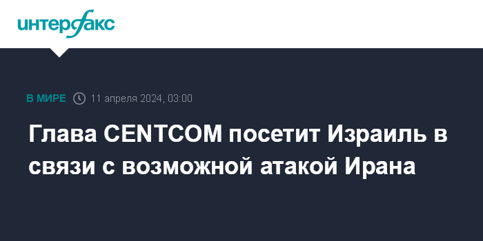 Глава CENTCOM посетит Израиль в связи с возможной атакой Ирана