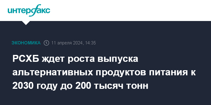 РСХБ ждет роста выпуска альтернативных продуктов питания к 2030 году до 200 тысяч тонн