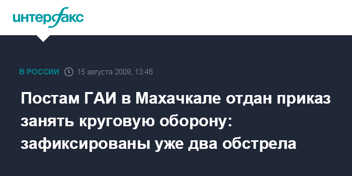 Москва. 15 августа. INTERFAX.RU - Посты ГИБДД в Махачкале в связи с обстрелом снайперов переведены на усиленный вариант несения службы.