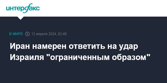 Иран намерен ответить на удар Израиля "ограниченным образом"