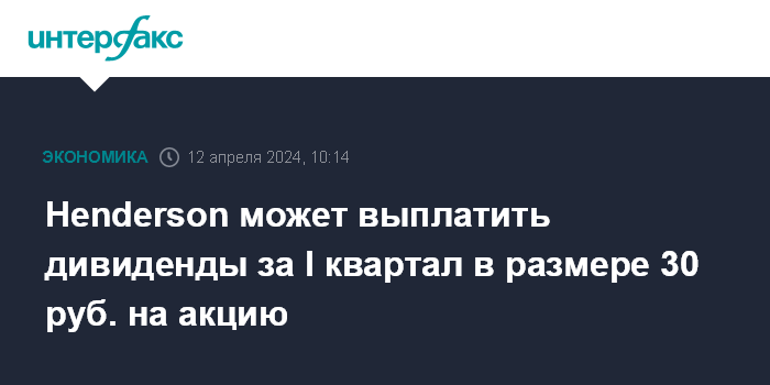 Henderson может выплатить дивиденды за I квартал в размере 30 руб. на акцию