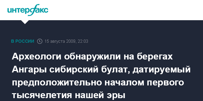 Археологи обнаружили на берегах Ангары сибирский булат, датируемый предположительно началом первого тысячелетия нашей эры