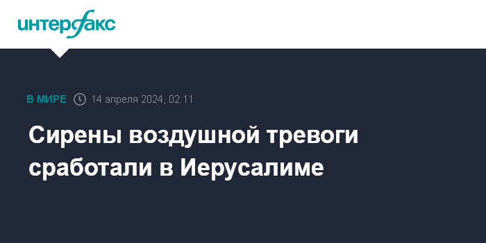 Москва. 14 апреля. INTERFAX.RU - Сирены воздушной тревоги сработали в Иерусалиме, в городе слышны звуки взрывов, сообщает в воскресенье The Times of Israel.