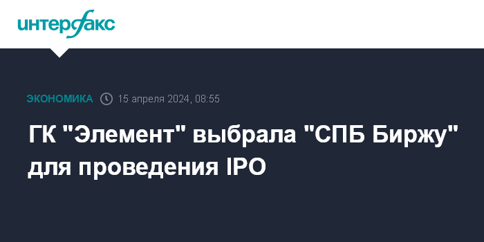 Президент "Элемента" Илья Иванцов говорил "Коммерсанту", что группа будет технически готова к проведению IPO в первой половине 2024 года.