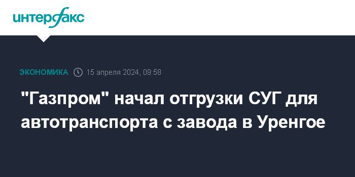 Москва. 15 апреля. INTERFAX.RU - "Газпром переработка" начала отгрузки СУГ для автотранспорта в Уренгое, сообщила компания.