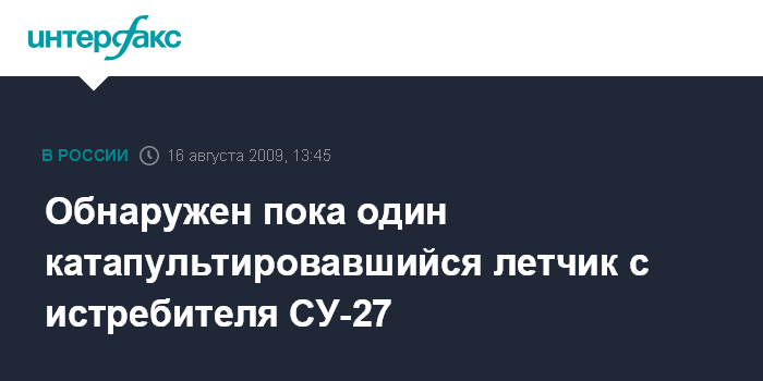 Жуковский (Московская область). 16 августа. INTERFAX.RU - Поисковая служба сообщила о том, что найден первый из двух катапультировавшихся во время репетиции воздушного шоу над Жуковским с истребителя Су-27 летчиков, сообщили "Интерфаксу-АВН" в Летно-исследовательском институте им. Громова.