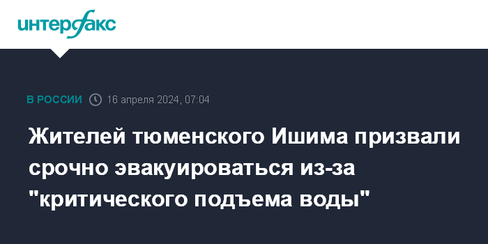 Жителей тюменского Ишима призвали срочно эвакуироваться из-за "критического подъема воды"