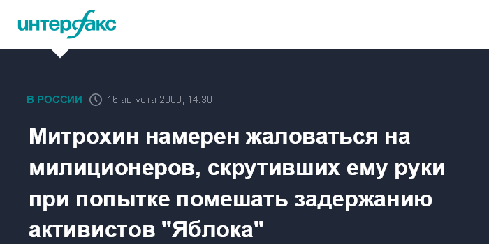 С.Митрохин сообщил в воскресенье "Интерфаксу", что инцидент произошел когда он пытался оградить от задержания своих соратников, собиравших в центре столицы подписи в преддверии выборов в Мосгордуму.