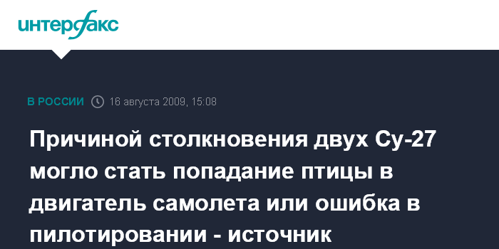 Причиной столкновения двух Су-27 могло стать попадание птицы в двигатель самолета или ошибка в пилотировании - источник