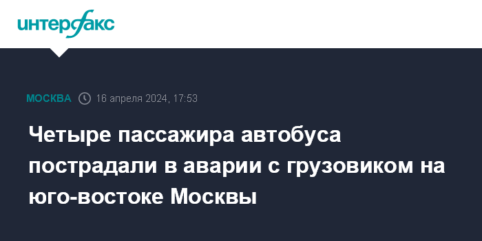 Четыре пассажира автобуса пострадали в аварии с грузовиком на юго-востоке Москвы