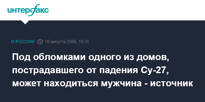 Под обломками одного из домов, пострадавшего от падения Су-27, может находиться мужчина - источник