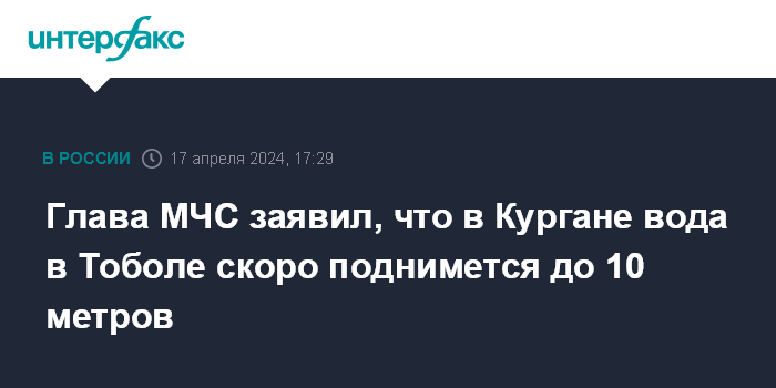 "В Курганской области в ближайшие дни мы ожидаем максимального уровня воды, который, по прогнозам, будет достигать 10 метров, что является историческим максимумом", - сказал министр.