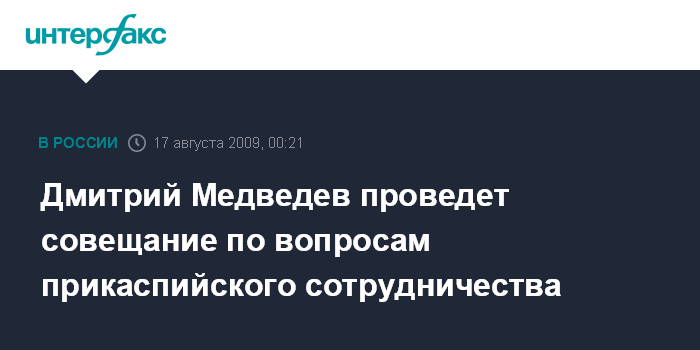 Москва. 17 августа. ИНТЕРФАКС - В ходе рабочей поездки в Астраханскую область президент Дмитрий Медведев проведет совещание по вопросам прикаспийского сотрудничества.