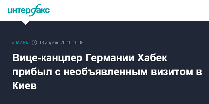 Москва. 18 апреля. INTERFAX.RU - Вице-канцлер и министр экономики Германии Роберт Хабек в четверг начал ранее не анонсировавшийся визит в Киев, сообщает Bild.