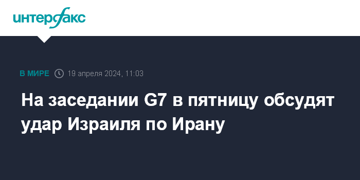 Москва. 19 апреля. INTERFAX.RU - Министры иностранных дел стран "Группы семи" обсудят израильские удары по иранской провинции Исфахан на заседании в пятницу, сообщила глава МИД Канады Мелани Жоли.