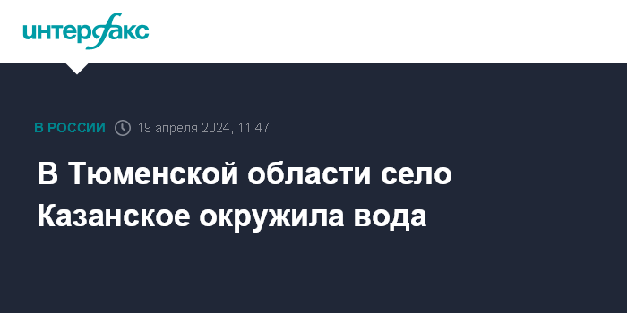 Москва. 19 апреля. INTERFAX.RU - В Тюменской области разлившаяся река Ишим окружила село Казанское, сообщил информационный центр регионального правительства.