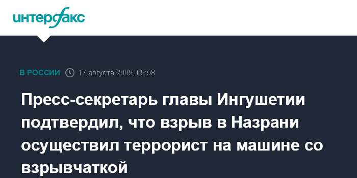 Пресс-секретарь главы Ингушетии подтвердил, что взрыв в Назрани осуществил террорист на машине со взрывчаткой