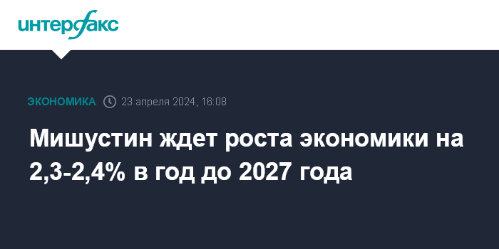 Мишустин ждет роста экономики на 2,3-2,4% в год до 2027 года