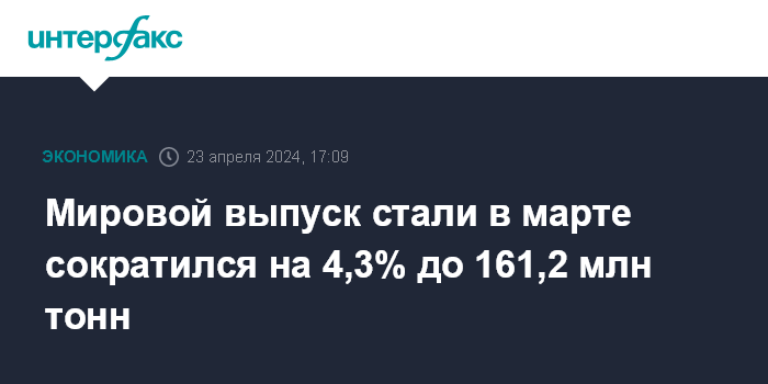 Мировой выпуск стали в марте сократился на 4,3% до 161,2 млн тонн