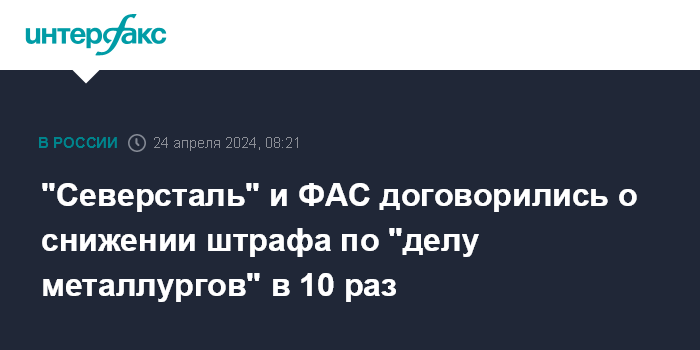 Как сказал "Интерфаксу" источник, знакомый с условиями подписанного сторонами мирового соглашения, при корректировке размера штрафа в рамках договора между компанией и ведомством для расчета была взята за основу более низкая планка процента выручки от продажи г/к проката в 2021 году.
