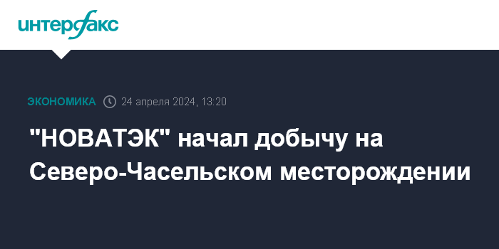 "НОВАТЭК" начал добычу на Северо-Часельском месторождении