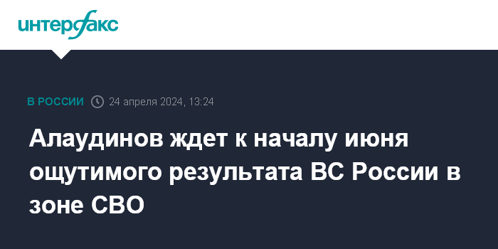 Москва. 24 апреля. INTERFAX.RU - Российские войска к концу мая - началу июня добьются ощутимого результата в зоне специальной военной операции на Украине, заявил Первому каналу заместитель начальника главного военно-политического управления Вооруженных сил России Апты Алаудинов.