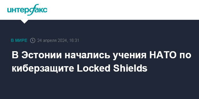 Москва. 24 апреля. INTERFAX.RU - В Эстонии стартовали масштабные учения НАТО по кибербезопасности Locked Shields ("Закрытые щиты"), организованные Центром сотрудничества НАТО по киберзащите (CCDCOE), сообщает пресс-служба Центра.