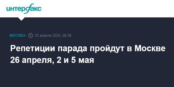 Репетиции парада пройдут в Москве 26 апреля, 2 и 5 мая